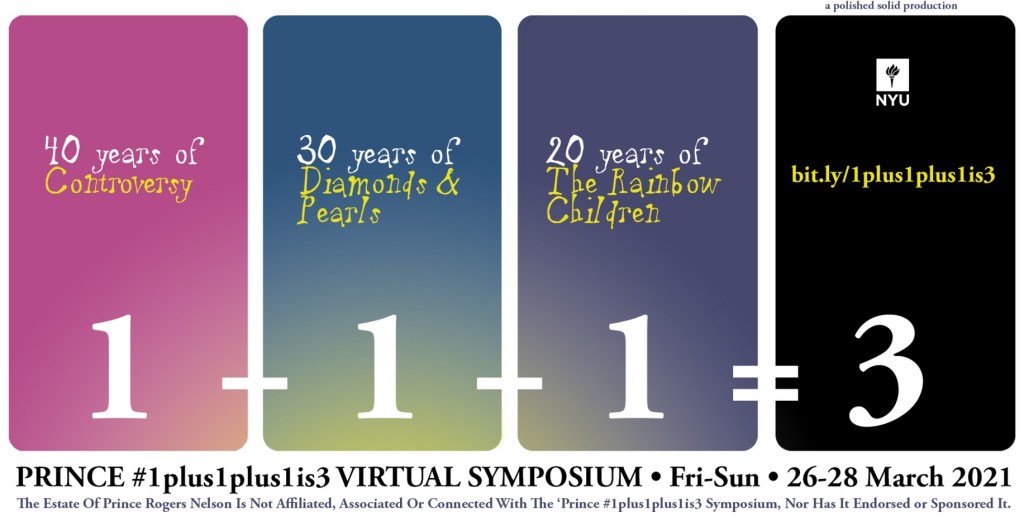 Recently I was thrilled to present at another Prince symposium organized by the incredible De Angela Duff and her team of Arthur Turnbull and Krysta Battersby. This was the second year that the symposium was virtual, and despite a few hiccups with the hosting platform, it was a smooth experience. The topics? Controversy at 40 years, Diamonds and Pearls at 30, and The Rainbow Children at 20. Thus: 1+1+1=3.